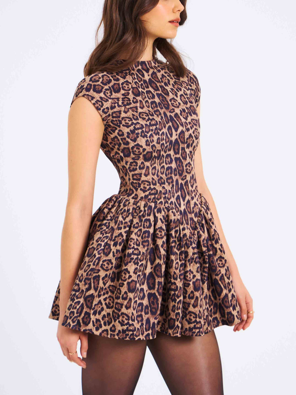 Setzen Sie auf Eleganz mit diesem stilvollen Mini-Kleid, das durch ein zeitloses Leopardenmuster besticht. Das Entwurf des Kleides optimiert eine ansprechende Silhouette, während die Mini-Länge eine vorteilhafte Passform ermöglicht. Der markante Leopardenprint verleiht dem Kleid eine auffällige und ansprechende Optik. Die Kombination aus Eleganz und einem Hauch von Wildheit sorgt dafür, dass dieses Kleid in verschiedenen Anlässen auffällt und sich nahtlos in verschiedene Outfits integrieren lässt.